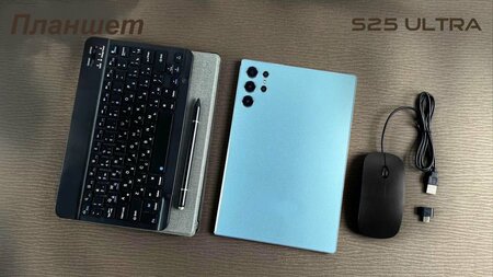Планшет с клавиатурой и мышкой S25 Ultra, 16 ГБ+1ТБ, 10,1", Андроид 13, для работы и развлечений, голубой
