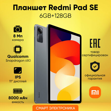 Планшет Redmi Pad SE. Ключевые преимущества: 11“ дисплей с режимом защиты зрения, 90 Гц частота обновления дисплея; 6 нм, процессор Snapdragon; 4 динамика, поддержка Dolby Atmos; Стильный цельнометаллический корпус, а также: фирменная оболочка MIUI 14 for Pad, эргономичный дизайн с плоскими рамками, расширение памяти при помощи карты MicroSD объёмом до 1 Тб, поддержка Hi-Res Audioи многое другое! В основной камере 8-мегапиксельный сенсор, во фронтальной камере – 5-мегапиксельный. Емкость аккумулятора составит 8000 мА·ч. Максимальная автономность при воспроизведении видео составляет 21 час. Габариты и масса планшета – 256 x 1687x 7,6 мм и 478 граммов.