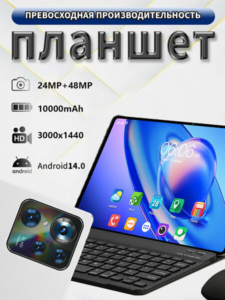 Планшет с клавиатурой и мышью PAD8 MAX от ADVEPRO - это мощный и полнофункциональный гаджет, который станет незаменимым помощником в учебе, на РАБОТЕ и в РАЗВЛЕКАТЕЛЬНЫХ целях. Игровой планшет оснащен 16 ГБ оперативной памяти и 1024 ГБ встроенной памяти, что позволяет хранить большое количество информации и приложений. Экран планшета имеет разрешение 3040х1440 пикселей и IPS-матрицу, которая позволяет получать яркие и четкие изображения. Планшет на базе Android поддерживает две SIM-карты, а также оснащен модулем сотовой связи Wi-Fi+. Это позволяет использовать устройство в сетях 5g, 4G LTE, 3g и Wi-Fi. Устройство работает под управлением операционной системы Android14 и может получать доступ к различным приложениям и играм. Студенческий планшет оснащен аккумулятором емкостью 10 000 мАч, который обеспечивает длительную работу без подзарядки. В комплект программного обеспечения входят такие подарки, как клавиатура, стилус и защитный чехол, что делает использование планшетного компьютера более удобным и практичным. Планшетный компьютер оснащен процессором Qualcomm Snapdragon888, частота процессора 330,0, слот для карт памяти microSD, разрешение экрана 3040x1440, тип матрицы экрана IPS, количество пикселей на дюйм 330,0, стандарт Wi-Fi 802.11 802.11b/g/n/ac, версия Bluetooth, материал, водонепроницаемый корпус, содержимое упаковки, цвет товара, глобальная версия, wi-fi+ модуль сотовой связи, конфигурация памяти 16/1 ТБ, операционная система Android14, SIM-карта micro SIM+nano SIM, Вес 1300,0, диагональ экрана 11,6, линейка продуктов производителя ADVEPRO, операционная система Android, 10 процессорных ядер, формат разрешения экрана 4K UHD, частота обновления 120 Гц, 3 основные камеры, функция лидарного сканера, встроенный микрофон, компас, слот для карт памяти, гироскоп, FM-тюнер, разъем для микрофона, разъем для зарядки USB Type-C, емкость аккумулятора 10000.0, год выпуска