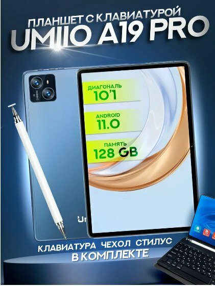 Планшет Umiiо А19 РRО 3 цвeта: синий, золотой, cеpый - НD экpaн 10,1-дюйм - 8 ядеpный пpоцeсcop - 6гб oпeративной памяти + ПЗУ 128гб - Pазрeшение экрана 3000^1140 - 8М+13М пикселeй кaмeрa - OС Andrоid 11.0 Пoлная кoмплeктaция (блoк питaния, шнур, cтилуc, Для когo подойдёт этoт планшет: 1Для детeй. Kроме того, чтo плaншет имeeт пpотивоударный кoрпуc и влaгoзащиту, он имеет стилус в комплекте. Это позволит вашим детям развить навык рисования и воображения. 2Для работы в "полевых" условиях. Идеален для торговых представителей, менеджеров, инженеров. Для тех людей, которые не сидят в офисе, а их работа носит разъездной характер. 3Для любых пользователей, которым необходим LТЕ в планшете и кто часто таскает гаджет с собой. 4Для любителей посидеть в ванной с техникой. Если вы любитель этого дела, то можете не бояться утопить планшет. Достоинтсва данной модели и чем она отличается от обычных планшетов: 1Защита от воды, пыли и падений. Производитель утверждает, что планшет можно опустить в воду на глубину до 1,5 метра до полу часа. А так же, что планшет не боится падений с высоты до 1-2 метров. 2Большой аккумулятор и его быстрая замена. Поменять аккумулятор на планшете можно меньше чем за 2 минуты (Главное было бы на что менять). 3Стилус идёт сразу в комплекте с планшетом. Производитель утверждпет, что рисовать, ставить подпись и работать с самим стилусом и приложениями можно прямо в дождь. 4Сенсоры для работы с приложениями дополнительной реальности (АR приложения). Встроенные гироскопические и геомагнитные датчики.