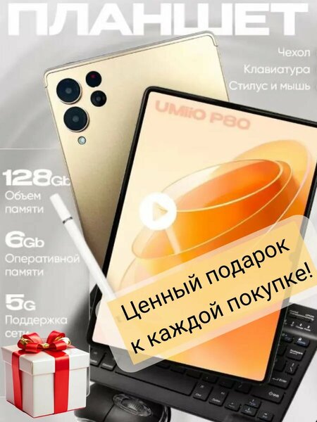 Планшет Umiio P80 PAD - это мощный и недорогой гаджет на базе операционной системы Android (Андроид). Графический интерфейс и сенсорный дисплей делают его идеальным выбором для различных задач - от игр, рисования до работы и просмотра фильмов. Модель оснащена стилусом для более удобного взаимодействия с экраном, а также поддерживает подключение клавиатуры для удобства при работе с текстом. Мощный аккумулятор обеспечивает длительное время работы без подзарядки. Поможет вам для работы, обучения или развлечений, 6 ГБ оперативной памяти, обеспечивает мгновенный отклик на ваши команды. С 128 ГБ внутренней памяти у вас будет больше места для хранения ваших фото, видео, музыки и приложений. Вы также можете расширить память с помощью microSD-карты, что позволит вам сохранить еще больше контента. Bluetooth имеет диапазон связи более 10 метров, что обеспечивает надежное соединение с вашими аксессуарами. Электронный гаджет идеально подходит для повседневного использования. 10.1" 128GB LTE. 6000mAh FullHD Android мини-размер и легкий вес, удобно держать и управлять даже одной рукой. Яркий и четкий экран дисплей дюймов позволяет удобно просматривать веб-страницы, отвечать на электронные письма и смотреть видео. Небольшой компактный планшет удобно взять с собой в дорогу, путешествие, положить в сумку. Может стать прекрасным подарком на любой праздник. Планшет андроид 128 GB - это идеальный выбор для тех, кто ценит качество и функциональность. Покупайте у нас и наслаждайтесь удобством и высокой производительностью!