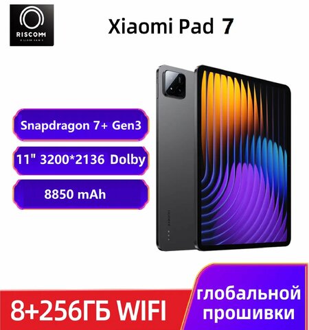 Планшет Xiaomi Pad 7, 11.2", 8/256 Гб, Wi-Fi, глобальная версия, тёмно-серый, не поддерживает SIM-карту, Упаковка открыта, но таблетка новая и не использовалась.