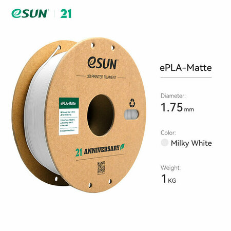 Филамент ePLA-Matte – новый дизайнерский материал на базе термопластика PLA от знаменитой компании eSUN. Матовый PLA позволяет получать модели без глянцевого блеска и с матовой текстурой, что делает его идеальным для создания произведений, требующих сдержанного внешнего вида. Такой пластик широко используется в изготовлении аксессуаров, украшений для дома, игрушек, скульптур и в косплее. Пластик ePLA-Matte сохраняет все преимущества PLA: легко печатается, имеет низкую усадку, не растрескивается, отсутствуют пузырьки. Поддержки легко снимаются, а поверхность изделия получается гладкой и плоской. По сравнению с обычной нитью PLA, eSUN ePLA-Matte обладает более высокой прочностью, что тем самым позволяет ее применять в разных областях, а благодаря усовершенствованной бумажной катушке eSUN Matte PLA обладает лучшей адгезией, что устраняет проблему прилипания. Изделие имеет высокую прочность и его нелегко сломать. Улучшенный матовый PLA обеспечивает приятную матовую текстуру с визуальным эффектом уменьшения видимости слоя. Фантастическая матовая текстура делает модели менее “пластиковыми” на вид, обеспечивает прекрасный внешний вид поверхности. Если вы хотите создать красивые и оригинальные изделия из пластика, то филамент eSUN Matte PLA - это отличный выбор. Попробуйте его и убедитесь сами!