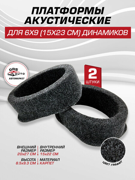 Платформы акустические универсальные Кол-во: 2 шт; Типоразмер динамиков: 6х9 дюйм; Внешний диаметр: 27 см х 20 см; Внутренний диаметр: 22,2 см х 15,2 см; Высота подиума: 9,3 см х 8,5 см; Площадки для крепления: да; Со скосом: да; Материал изделия: ДСП; Материал обтяжки: ткань «карпет»; Применяемость: универсальные. Подходят для большинства марок авто. Позволяют установить динамики на любую ровную поверхность, за счёт чего улучшает звучание аудиосистемы автомобиля.