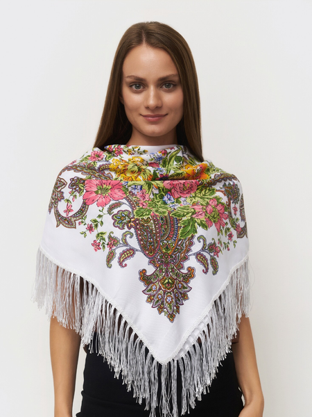 Русский народный платок с бахромой и принтом представляет собой изысканный аксессуар, который добавит элегантности и стиля в ваш гардероб. Этот платок выполнен из высококачественных материалов, обеспечивающих его долговечность и комфорт при использовании. Уникальный народный узор с цветами и изящная бахромочная отделка делают его отличным выбором для любых случаев: от повседневного ношения до торжественных мероприятий. Легкость и универсальность этого аксессуара позволяют легко сочетать его с различными нарядами, добавляя особый шарм и изысканность вашему образу. Платок можно носить как косынку на голове, или как легкий шарфик вокруг шеи, так же можно накинуть на плечи – это идеальный способ подчеркнуть вашу индивидуальность и стиль. Размер (см): 90*90. Состав: 100% полиэстер.