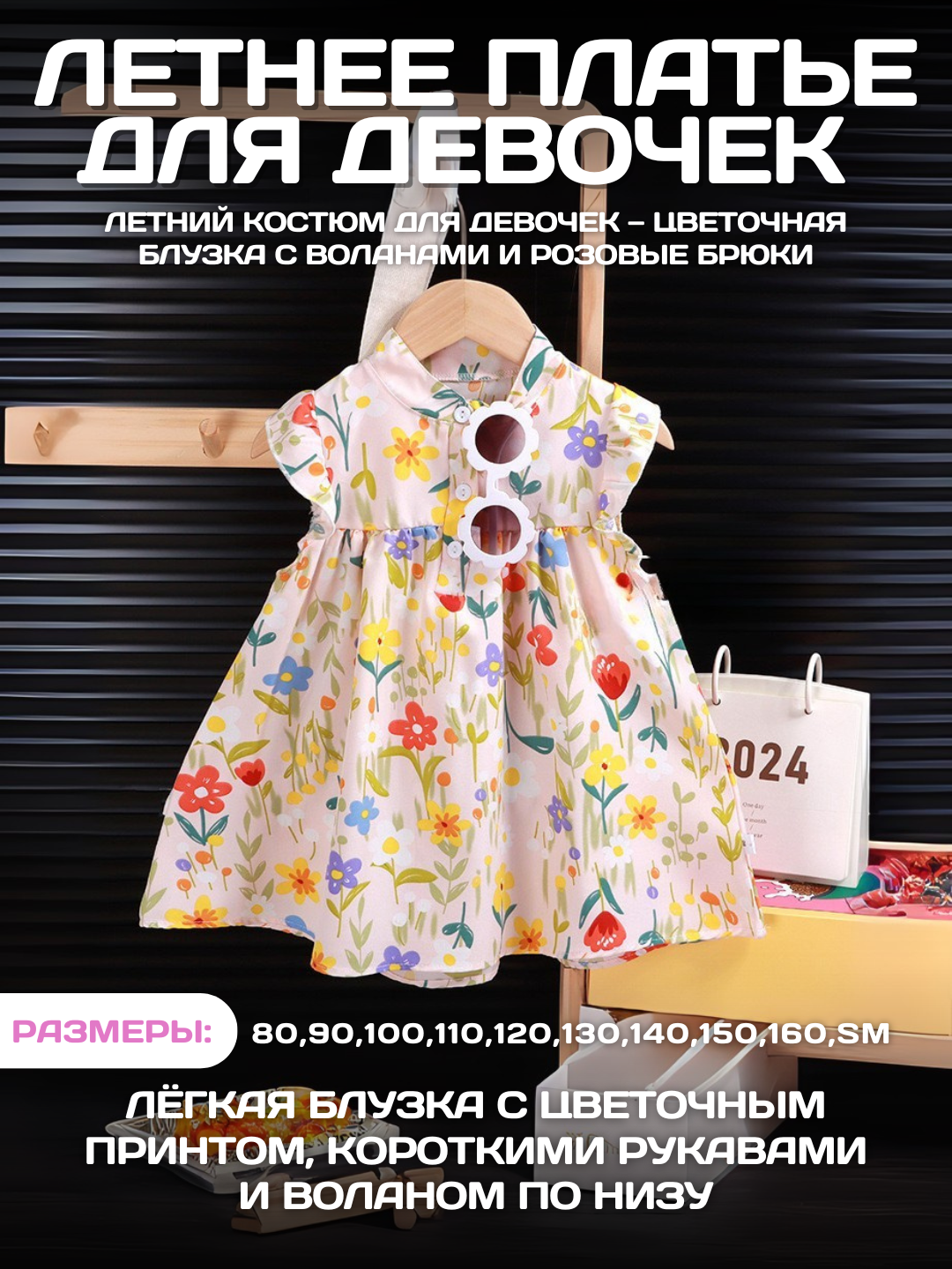 Летнее платье для девочек с очаровательным цветочным принтом — это идеальное сочетание комфорта, практичности и детского стиля. Изготовлено из мягкой и дышащей ткани с добавлением эластана (четырёхсторонний стрейч), благодаря чему платье тянется и удобно садится по фигуре, не стесняя движений даже самых активных малышек. Модель выполнена в классическом А-силуэте, который красиво смотрится и подчёркивает нежность детского образа. Короткие рукава и лёгкая ткань делают это платье идеальным выбором для жаркой погоды весной и летом. Отделка в виде воланов и аккуратная строчка добавляют изделию изысканности и подчёркивают высокое качество пошива. Благодаря универсальному фасону, платье подходит для повседневных прогулок, садика, детских мероприятий, фотосессий и даже праздников. Платье доступно в нескольких ярких и спокойных расцветках — жёлтый, розовый, сиреневый, голубой, чёрный и другие — чтобы каждая девочка могла выбрать свой любимый цвет. Широкий размерный ряд (от 80 до 160 см) позволяет найти подходящую модель как для самых маленьких, так и для школьниц. Ключевые особенности: Актуальный цветочный принт Комфортная посадка и эластичная ткань Мягкий и безопасный материал (безопасность A-класса) Подходит для весенне-летнего сезона Устойчиво к многократным стиркам Прекрасный подарок для девочек