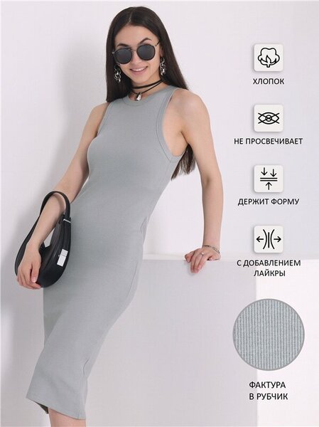 Летнее облегающее платье-майка длиной чуть ниже колена из мягкого трикотажа кашкорсе в рубчик. Материал лапша красиво облегает фигуру, подчеркивает женственные изгибы тела, но за счет эластичности материала не стесняет движений. Вертикально направленная фактура вязки зрительно стройнит и вытягивает силуэт. Платье с открытыми плечами для тех, кто ценит комфортную и стильную одежду: качественный натуральный трикотаж хорошо пропускает воздух, позволяя коже дышать. В модели без рукавов не будет жарко даже в самую теплую погоду. Дизайн выполнен в лаконичном стиле, без лишних деталей, что позволяет сочетать модель с любой обувью и создавать разнообразные образы: повседневный, офисный, спортивный, молодежный, городской Casual или пляжный. Платье для беременных на фотосессию - идеально садится в обтяжку на любом сроке беременности и после нее. Чтобы премиальный вид одежды продолжал Вас радовать после каждой стирки, пожалуйста, соблюдайте правила ухода за трикотажными изделиями: машинная стирка (руками не стирать!) при температуре 40 градусов, без замачивания.