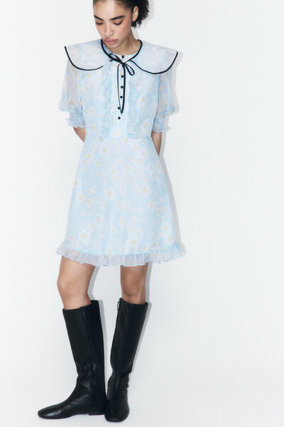 Достоинства:Красивое, нежное. Черная отделка на воротнике, черные пуговицы- это изюм платья. Без этих деталей, платье было бы не интересным. Недостатки:Все хорошо. В размер Комментарий:Идёт в размер