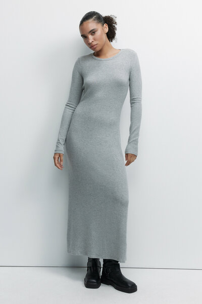 - Платье-футляр макси облегающее с длинными рукавами. Длинное женское платье облегающего кроя из мягкой, легкой и приятной к телу вискозной ткани - Высокий круглый вырез горловины без воротника - Длинные прилегающие рукава - Прямая юбка до щиколотки без декоративных элементов - Без застежки, без карманов - Однотонное серое вязаное платье для женщин станет базой твоего осеннего гардероба - Соблазнительное облегающее макси-платье из новой осенне-зимней коллекции внесет дерзкое и стильное разнообразие в твой повседневный или вечерний гардероб. Платье-футляр идеально сочетается с любимыми пиджаками, кардиганами и джемперами. Носи его с длинными или короткими дубленками, а также массивными ботинками или актуальными казаками для создания ультратрендового осеннего образа на любой случай жизни. Отличный базовый вариант для школы, университета или офиса - Размер на модели: S