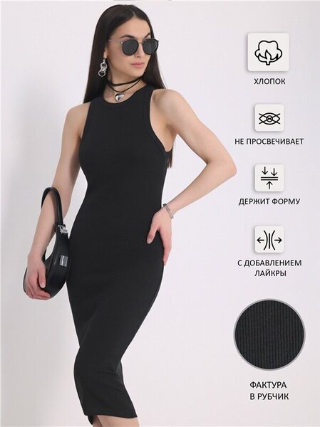 Летнее облегающее платье-майка длиной чуть ниже колена из мягкого трикотажа кашкорсе в рубчик. Материал лапша красиво облегает фигуру, подчеркивает женственные изгибы тела, но за счет эластичности материала не стесняет движений. Вертикально направленная фактура вязки зрительно стройнит и вытягивает силуэт. Платье с открытыми плечами для тех, кто ценит комфортную и стильную одежду: качественный натуральный трикотаж хорошо пропускает воздух, позволяя коже дышать. В модели без рукавов не будет жарко даже в самую теплую погоду. Дизайн выполнен в лаконичном стиле, без лишних деталей, что позволяет сочетать модель с любой обувью и создавать разнообразные образы: повседневный, офисный, спортивный, молодежный, городской Casual или пляжный. Платье для беременных на фотосессию - идеально садится в обтяжку на любом сроке беременности и после нее. Чтобы премиальный вид одежды продолжал Вас радовать после каждой стирки, пожалуйста, соблюдайте правила ухода за трикотажными изделиями: машинная стирка (руками не стирать!) при температуре 40 градусов, без замачивания.