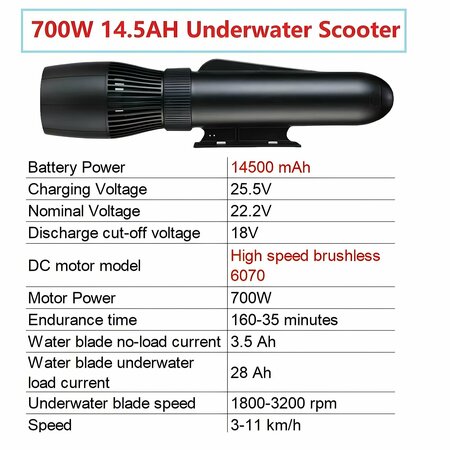 Прочная конструкция Созданный с учетом долговечности, самокат CAMOLECH выдерживает суровые условия использования под водой. Удобный дизайн Этот самокат, созданный для удобства использования, идеально подходит как для начинающих, так и для опытных дайверов. Универсальное использование Этот самокат идеально подходит для дайвинга и плавания на доске SUP. Он улучшит ваши водные впечатления. Высокая выходная мощность Бесщеточный двигатель мощностью 700 Вт обеспечивает эффективное движение, что упрощает погружение и плавание. Длительный срок службы батареи Испытайте длительные подводные приключения с замечательным временем работы 160 минут от аккумулятора емкостью 16000 мАч. Высокоскоростная бесщеточная доска для серфинга 6070. Высокоскоростная бесщеточная доска для серфинга 6070. Электрический подводный морской скутер мощностью 700 Вт, 160 минут, самокат для дайвинга Подводные пропеллеры для SUP-двигателя бассейна Двигатель CM7-1 16 Ач 700 ВтДвигатель CM7-1 16 Ач 700 Вт Мощность аккумулятора: 16000 мАч Съемный Глубина погружения: Макс. 30 м Напряжение зарядки: 25,5 В Номинальное напряжение: 22,2 В Напряжение отключения разряда: 18 В Модель двигателя постоянного тока: высокоскоростной бесщеточный 6070. Мощность двигателя: 700 Вт Время выдержки: 40-160 минут Ток холостого хода водяного лезвия: 3,5 А Ток нагрузки под водой лезвия: 28 Ач. Скорость подводного лезвия: 1800-3200 об/мин. Скорость передачи: 10 скоростных режимов Скорость SUP: 3-10 км/ч Функции: Дистанционное управление Тип: Батарейки для часов Язык: Английский Совместимость: Полная совместимость Для возрастной группы: Взрослые Единица измерения: штука/штуки Количество: 1 Электрическо: И Тип: аксессуар Цвет: 700w