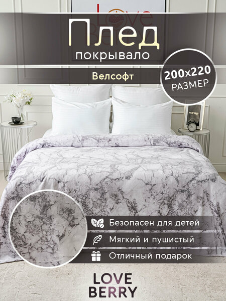 Плед 200х220 Евро. Большое однотонное тонкое покрывало– базовая вещь для дома. Создает неповторимую атмосферу уюта. Подходит как накидка на угловой диван и двухспальную кровать. Милый пледик в любой интерьер детской, гостиной, спальни. Универсален женщин и мужчин, мальчиков и девочек. Велсофт по внешнему виду напоминает микрофибру, махру или плюш, а по характеристикам не уступает хлопку и другим натуральным тканям. В структуре материала содержится полиамид, который не пропускает воздух, не покрывается катышками, быстро сохнет и практически не мнется, необязательно гладить, либо при желании допускается глажка теплым утюгом с изнаночной стороны. Неприхотливость в уходе и малый вес делает условия хранения и транспортировки очень удобными – можно брать собой в машину при длительных поездках, на пикник. Плотность составляет 190 г/м2. Незаменим, чтобы укрываться в холодное время года взрослым и детям самого нежного возраста. Изделие не теряет яркость цвета после стирки, так как окраска произведена стойкими, но абсолютно безвредными красителями. Превосходит флисовый и велюровый пледы за счет наибольшей износостойкости – не деформируется от влаги и механического воздействия. Сверхтонкие волокна в составе придают покрывалу привлекательную легкость и прочность, мягкость и нежность. Нити полиэстера сплетаются в огромное количество воздушных полостей, благодаря которым замечательно сохраняется тепло, позволяя коже дышать. Стирается в стиральной машинке при температуре 30 градусов, без использования хлора и отбеливателей. Антибактериальный, гипоаллергенный и гигиеничный - не впитывает пыль и грязь, не привлекает моль и других насекомых, не поражается грибком. Идеальный вариант подарка бабушке, сестре, папе, жене, друзьям или коллегам на Новый год, 23 февраля, 14 февраля и без повода. Текстиль и постельные принадлежности удивят вас отличным качеством по приятным ценам. С любовью LoveBerrry!