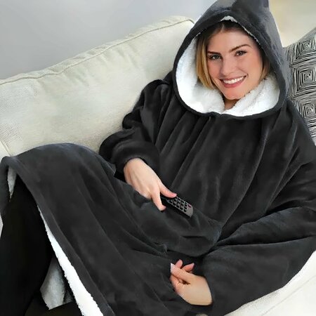 Плед с рукавами и капюшоном - качественный, домашний аксессуар для всей семьи. Это самый уютный и комфортный костюм с капюшоном, сочетающий в себе большую толстовку и теплое одеяло, хорошо согревающее дома в долгие зимние вечера или на открытом воздухе. Толстовка сшита из ультра мягкого флиса, имеет один большой размер, чтобы максимально укрыть с головы до ног. В толстовке есть один вместительный карман чтобы держать под рукой все необходимое. Толстовка двусторонняя, второй цвет белый. В ней удобно устроится у телевизора или камина, а так же выехать на природу, устроить пикник и наслаждаться жизнью в любую погоду. Легко согреет Вас даже в самые холодные зимние вечера. Это великолепная большая и теплая толстовка, которая легко согреет Вас даже в самые холодные зимние вечера. Её размер всего один и он весьма большой. Всё это сделано для того чтобы вы могли просто спрятаться в этой большой и мягкой кофте и согреваться. Возьмите её с собой в поход или просто релаксируйте дома за просмотром любимых фильмов - она идеально подойдёт как для одного, так и для другого! Преимущества толстовки: