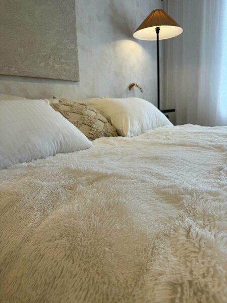 Красивый пушистый плед из искусственного меха Размер: 220x240см, длина ворса 3,5см, может не только согреть вас прохладным вечером, но и стать неотъемлемой частью декоративного интерьера вашего дома, квартиры. Меховой плед-покрывало бамбуковое с длинным пушистым ворсом, плед травка, мягкое и очень теплое. Им можно укрыться или использовать как покрывало на двуспальную кровать, матрас, диван, на детскую кровать, защитит ваше постельное белье. Длинный и пушистый ворс, бамбуковый с одной стороны, с другой - короткий ворс, смотрится богато. Он не лезет, поэтому безопасен для детей и взрослых. Легко стирается в стиральной машине при температуре 40 градусов, химчистка не требуется. После покупки рекомендуется хорошенько стряхнуть плед после заводского изготовления, может оставаться пух. Плед имеет длинный ворс, тактильно очень приятный на ощупь. Также пушистый плед травка -это отличный подарок, который понравится и детям и взрослым. Состав: Бамбук искусственный мех. Размер — 220x240см(фактический размер может быть немного больше) Цвет: молочный (молочно-белый)(кремовый) Перед первым применением рекомендуется стирка, ручная или машинная при температуре 40 оС. Будем рады Вашим заказам и отзывам.