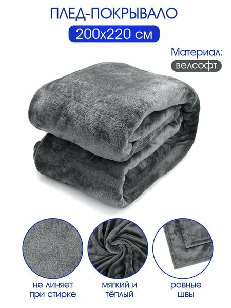 Плед велсофт 200х220 см: Ваш идеальный спутник уюта и тепла! Представляем вам плед велсофт размером 200х220 см с густым ворсом — это не просто плед, а ваш верный соратник в создании уюта и тепла в доме! Выполненный из высококачественного велсофта, он дарит невероятную мягкость и тактильное наслаждение, позволяя вам забыть о всех заботах и погрузиться в мир комфорта. С плотностью 260 г/м² этот плед сочетает легкость и тепло, превращая его в вашего лучшего друга в холодные вечера. Благодаря "дышащей" структуре материала, он эффективно пропускает излишки влаги и сохраняет тепло, создавая идеальные условия для отдыха. Представьте, как вы уютно устроились с чашкой горячего чая, завернувшись в этот плюшевый плед. Мягкие волокна обнимают вас, создавая атмосферу, в которой хочется оставаться навсегда. Плед велсофт не только обеспечивает комфорт, но и добавляет стиль вашему интерьеру. Используйте его как накидку на диван или покрывало на кровать — в любом случае, он станет ярким акцентом в вашем доме. Этот велюровый плед не только красив, но и практичен. Пушистое покрывало украсит ваш интерьер и подарит тепло в самые холодные дни. Легкость ухода также является его большим преимуществом: машинная стирка в деликатном режиме или ручная при 30 градусах не повредят его. Густой ворс не осыпается, не скатывается и не липнет к одежде и обивке, сохраняя свою форму и качество со временем. Плед станет отличным подарком для женщины, бабушки или коллеги на 8 марта, День рождения или Новый год. Классический дизайн идеально подойдет в подарок мужчинe на 23 февраля или День рождения, и будет полезен в авто, поезде, самолете или на рыбалке. Не упустите шанс сделать свой дом более уютным и комфортным! Закажите плед покрывало 200х220 см прямо сейчас и дайте себе возможность наслаждаться каждым мгновением в тепле и уюте, который дарит плед велсофт. Вы достойны этого!