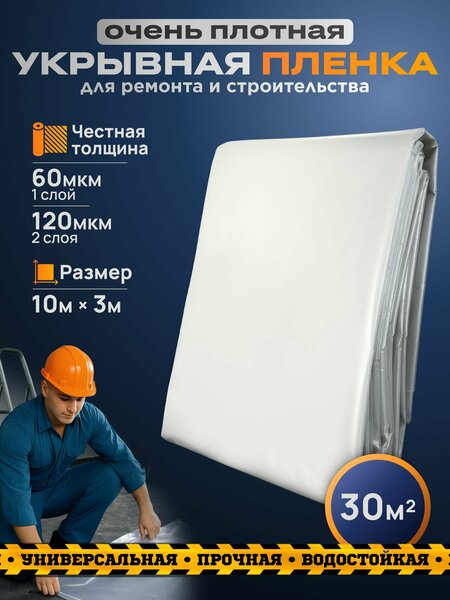 Пленка укрывная для ремонта полиэтиленовая плотная 50 мкм - 1 слой. Используется как строительная. Плотная и эластичная защитная пленка для укрывания мебели, авто, пола. Применяется в качестве гидроизоляции. Пленка строительная производится из ПВД (полиэтилен высокого давления)Ширина 3 метра, длина 10 метров, общая площадь 30 кв. м. Очень прочная, устойчива к порезам и разрывам. Собственное производство гранулы и пленки. Строительная пленка может быть чуть толще 50 микрон. Пленка укрывная для ремонта – идеальное решение для защиты различных поверхностей во время строительных и ремонтных работ. Плотная полиэтиленовая пленка размером 3 на 10 метров и толщиной 50 микрон обеспечивает надежную защиту от загрязнений, пыли и влаги. Этот продукт незаменим в каждом доме, где проводятся ремонтные работы. Пленка полиэтиленовая укрывная обладает высокой прочностью и устойчивостью к механическим повреждениям. Она легко укладывается и крепится, что позволяет быстро организовать защиту мебели и других предметов. Защитная пленка для мебели обеспечивает сохранность поверхностей от краски, штукатурки и других строительных материалов, что особенно важно для поддержания чистоты и порядка в помещении. Эта строительная пленка также может использоваться для упаковки мебели при переездах, а ее прозрачная структура позволяет визуально контролировать состояние защищаемых объектов. Плотная пленка строительная идеально подходит как для внутренних, так и для наружных работ, включая утепление окон и создание теплиц. Утеплительная пленка для окон позволит сохранить тепло в помещении, а пленка для парника обеспечит защиту растений от неблагоприятных погодных условий. Пленка укрывная плотная – это многофункциональный продукт, который можно использовать в различных сферах. Ее практичность и эффективность делают ее незаменимым помощником в ремонте и строительстве, а также в садоводстве и ландшафтном дизайне. Полиэтиленовая пленка для ремонта – это надежный выбор для тех, кто ценит качество и долговечность.