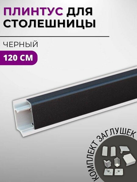 Плинтус кухонный для столешницы алюминиевый прямоугольный квадро-ч черный, 1,2 м, с комплектом заглушек