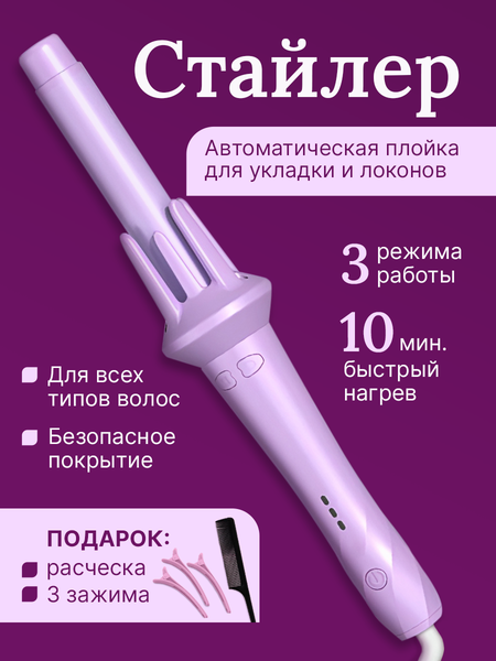 Автоматический вращающийся стайлер для волос. Создавайте красивые локоны и кудри легко и быстро с помощью автоматической плойки-стайлера! Этот мультистайлер обеспечит идеальную укладку без повреждений, придавая волосам гладкость, шелковистость и блеск. Основные характеристики: ✅ Автоматическое вращение – создание локонов без лишних движений. ✅ Три температурных режима (170°C, 190°C, 210°C) – подходит для всех типов волос. ✅ Керамическое покрытие – равномерный нагрев и защита от пересушивания. ✅ Турмалиновая ионизация – убирает статическое электричество и восстанавливает структуру волос. ✅ Быстрый нагрев за 10 секунд – мгновенная готовность к работе. ✅ Длина шнура 1,8 м (вращается на 360°) – удобство укладки без спутывания. ✅ Автоотключение через 30 минут – защита от перегрева. ✅ Компактный размер – удобен для путешествий и хранения. Идеален для: ✨ Создания крупных локонов, легких волн и мелких завитков. ✨ Домашнего и профессионального использования. ✨ Быстрой укладки перед важными событиями. Комплектация: Автоматическая плойка стайлер. Расческа-гребешок. Заколки (3 шт.). Инструкция на русском языке. Красивая подарочная упаковка. Как пользоваться: 1 Включите электрощипцы для завивки волос и выберите температуру. 2 Поместите прядь в зажим стайлера для локонов. 3 Нажмите кнопку – автоматическая плойка закрутит волосы сама. 4 Подержите 5–15 секунд – и ваши идеальные локоны готовы! Идеальный подарок для женщин, девушек, подруг, мам и сестёр! Создавайте профессиональные укладки без посещения салона!