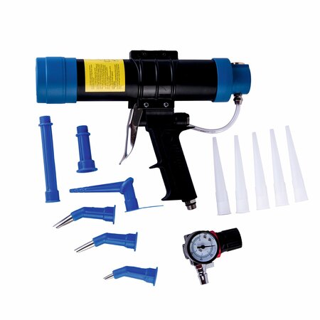 Универсальный пистолет для герметика в фольгированных тубах по 310 мл. Предназначен для удобного и равномерного выдавливания герметика. Легкий и простой в обращении пневматический пистолет с эргономичной рукоятью и алюминиевым цилиндром. Встроенный регулятор давления; 11 насадок высокая производительность Герметик подается непрерывно и плавно, что обеспечивает высокую производительность и качество работы.