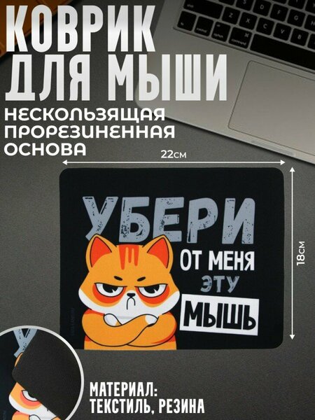 Размеры: 22 х 18 см. Материал: Текстиль, Резина. Упаковка: Полиэтиленовый пакет. Коврик для мыши "Убери эту мышь" с, изготовлен из текстиля и резины, упакован в полиэтиленовый пакет, представляет собой оригинальный аксессуар для рабочего стола с игривым дизайном. Оригинальный подарок на любой праздник или награждение. Он станет достойной памятной наградой за победы и достижения от коллектива на память. Символизирует не только личные успехи, но и благодарность за труд и преданность делу. Актуально в качестве новогоднего сюрприза жене, мужу, отцу, взрослым родственникам (папе, дедушке, маме, бабушке), коллегам (начальнику), преподавателю или юбиляру. Такой красивый сувенир подходит для множества знаковых дат и событий дома и в офисе, на юбилеи родителей, международный женский день (8 марта), 14 и 23 февраля, Новый год или день рождения (ДР). Считается хорошим корпоративным подарком как для мужчин (сыну, брату, другу, любимому парню, руководителю), так и для женщин (начальнице, дочери, сестре, подруге или девушке).