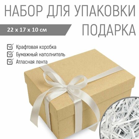 Подарочная коробка RUMBA, с наполнителем и атласной лентой, 22 х 17 х 10 см, крафтовая