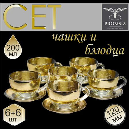 Подарочный чайный набор с алмазной гравировкой PROMSIZ "ГИПНОЗ" / Чашки с блюдцами / 12 предметов