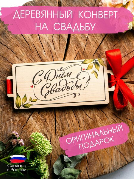 Наш конверт - это идеальный подарок для молодожёнов. Этот стильный аксессуар станет прекрасным дополнением к свадебному торжеству и сохранит тёплые воспоминания об этом дне. Конверт изготовлен из высококачественного дерева, что придаёт ему прочность и долговечность. Цветная печать выполнена с использованием ярких и насыщенных красок, которые не выцветают со временем. Атласная лента добавляет изысканности и шарма, делая конверт ещё более привлекательным. Внутри конверта достаточно места для хранения денежных подарков. Благодаря своей компактности и оригинальному дизайну, он станет отличным выбором для поздравления молодых супругов. Внешний размер конверта: 19,5*8,5см Внутренний размер места под купюры: 16,3*7,1см