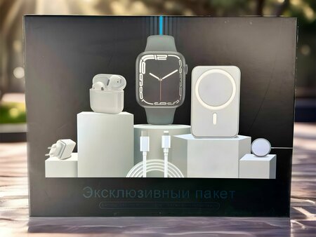 Представляем вашему вниманию эксклюзивный подарочный набор “6 в 1”, включающий в себя смарт-часы Premium-класса, совместимые с устройствами на базе iOS и Android. Этот набор станет идеальным подарком для любого, кто ценит стиль, удобство и передовые технологии. Смарт-часы обладают широким спектром функций, включая мониторинг активности, управление музыкой, уведомления о звонках и сообщениях, а также возможность принимать и отклонять звонки. Стильный дизайн и высококачественные материалы гарантируют комфорт и долговечность использования. Помимо смарт-часов, набор включает внешний аккумулятор, адаптер на 20 Вт и наушники AirPods 3 . Внешний аккумулятор позволит всегда оставаться на связи и заряжать ваше устройство в любой момент. Адаптер и наушники обеспечат максимальное удобство и качество звука. Подарочный набор “6 в 1” станет отличным выбором для тех, кто хочет получить все самое лучшее в одном комплекте. Не упустите возможность порадовать себя или своих близких этим замечательным подарком!