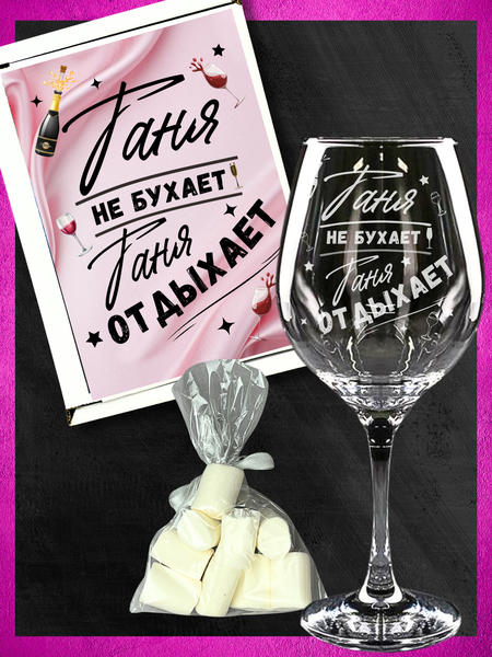 Именной бокал с гравировкой от Чайбокс в подарочной упаковке для Тани - прикольный подарок девушке Татьяне на любой праздник! Каждый набор бокалов с надписью имеет неповторимую гравировку со своим именем. Ищите прикольный подарок на девичник или свадьбу? Мы создали неповторимые подарочные наборы -они станут изюминкой любой вечеринки. Сюрприз бокс для любимой сестры содержит красивые бокалы с гравировкой - стильный именной подарок на 8 марта и Новый год. Подарок сюрприз станет украшение праздничного стола и кухни. Подарочный бокс с приколом -аксессуар для фотосессии на пикнике и на природе, чтобы устроить веселую съемку смешных роликов рилз для девушек. Сюрприз с пошлостью для подружки на именины придется по нраву всем тем, кто любит юмор. Заслуживает внимания презент для женщин коллег в подарок на новогодний корпоратив на работу. Прикольные наборы surprise box для женщин представлены в разных вариациях. Винные бокалы для жены, с изящными формами, которые входят в комплект подарочных боксов, выполнены из стекла высокого качества. Текст прикольных и смешных надписей нанесенных на бокалы для мартини с помощью лазерной гравировки. Это значит, что надпись на бокале для праздника, наборе посуды на день рождения не сотрется и будет долго сохранять свой внешний вид и создавать праздничное настроение. За стеклянной посудой легко ухаживать, бокалы подходят для различных напитков. Фужеры в подарок женщине на ДР - это лучший вариант недорогого подарка на Годовщину. Стильные бокалы из прочного стекла станут украшением праздничного стола и будут долгое время напоминать о дарителе. Каждый стеклянный бокал с надписью упакован в несколько слоев пузырчатой пленки и зафиксирован крафтовой бумагой, а саму подарочную коробку помещаем в дополнительный транспортировочный короб. Понимаем, как сделать подарок особенным, поэтому предлагаем Вам свои готовые решения в виде красиво оформленных подарочных боксов, оригинальных подарков женщине, прикольных наборов подруге, сестре и коллеге. Дарите яркие эмоции вместе с Чайбокс!