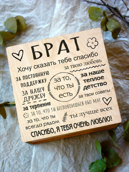 Подарочный набор для брата в деревянной коробке с крышкой на магните