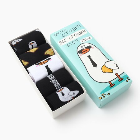 Набор мужских носков KAFTAN – это стильное и практичное решение для повседневного гардероба. В комплект входят 5 пар мужских носков универсального размера 41–44 (27–29 см), выполненных из качественного материала, обеспечивающего комфорт, долговечность и удобство при ежедневной носке. Каждая пара украшена оригинальными принтами, которые добавляют образу индивидуальности и делают аксессуар не только практичным, но и стильным. Такой набор подойдёт для офиса, прогулок, занятий спортом или отдыха дома. Высокое качество тканей гарантирует, что носки долго сохраняют форму, не растягиваются и не теряют цвет после стирки. Мягкий и приятный к телу материал обеспечивает вентиляцию и комфорт в течение всего дня. Набор из 5 пар KAFTAN станет отличным вариантом для личного использования и универсальным подарком для мужчины на Новый год, день рождения, 23 Февраля или любой другой праздник. Практичность, современный дизайн и внимание к деталям делают этот комплект востребованным и полезным. Мужские носки KAFTAN с принтами – это сочетание стиля и комфорта, которое подчеркивает индивидуальность и создаёт настроение каждый день.