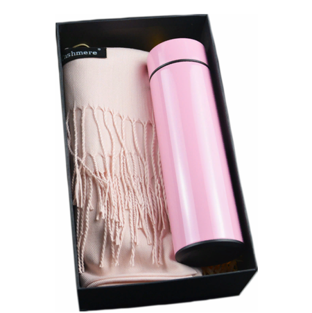 Подарочный набор MyPads M-010 термос с умным дисплеем из нержавеющей стали 304 который показывает температуру напитка и 100 % кашемировый шарф. Подарочный набор для девушек женщин, в комплекте термос и кашемировый шарф.