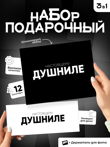{"widgets":{"@card/UniversalPromoBadge":{"/content/page/fancyPage/universalPromoBadge":{"wrapperProps":{"margins":{"bottom":"3"}},"initialTime":1759441783677,"offerComposeId":"1363500841"}}},"meta":{"/content/page/fancyPage/universalPromoBadge":{"name":"@card/UniversalPromoBadge"}},"collections":{"productServiceSnippets":{"1363500841":{"productSnippet":{"type":"MODEL_CARD_LAYOUT","productPayload":{"title":{"value":"Подарочный набор \"Подарок душниле\", 12 мини плиток, конверт для денег, подставка для фотографии"},"badges":{},"wishlistButton":{"mskuId":103213559233,"businessId":129040177,"modelId":1363500841,"oskuId":103213559233},"rating":{"reviewsCount":78,"ratingCountStats":{"cnt3":10,"cnt4":21,"cnt2":6,"cnt1":4,"cnt5":413},"ratingValue":4.8,"ratingCount":454},"gallery":{"galleryType":"MIXED","mediaItems":[{"type":"IMAGE","picture":{"height":1759,"width":1318,"title":"Подарочный набор \"Подарок душниле\", 12 мини плиток, конверт для денег, подставка для фотографии","baseUrl":"https://avatars.mds.yandex.net/get-mpic/10500364/2a00000199099b874068bf09ed9ff71d51a6/"}},{"type":"IMAGE","picture":{"height":1759,"width":1318,"title":"Подарочный набор \"Подарок душниле\", 12 мини плиток, конверт для денег, подставка для фотографии","baseUrl":"https://avatars.mds.yandex.net/get-mpic/15382907/2a00000198f62e8cb74ad91a1177e7d026c0/"}},{"type":"IMAGE","picture":{"height":1759,"width":1318,"title":"Подарочный набор \"Подарок душниле\", 12 мини плиток, конверт для денег, подставка для фотографии","baseUrl":"https://avatars.mds.yandex.net/get-mpic/16413278/2a00000198f62e8cbd7dd380daddf005ed3f/"}},{"type":"IMAGE","picture":{"height":1759,"width":1318,"title":"Подарочный набор \"Подарок душниле\", 12 мини плиток, конверт для денег, подставка для фотографии","baseUrl":"https://avatars.mds.yandex.net/get-mpic/16786454/2a00000198f62e8cbd885836e0113c1296bf/"}},{"type":"IMAGE","picture":{"height":1759,"width":1318,"title":"Подарочный набор \"Подарок душниле\", 12 мини плиток, конверт для денег, подставка для фотографии","baseUrl":"https://avatars.mds.yandex.net/get-mpic/15392539/2a00000198f62e8cbef846fe9ef21401baef/"}},{"type":"IMAGE","picture":{"height":1759,"width":1318,"title":"Подарочный набор \"Подарок душниле\", 12 мини плиток, конверт для денег, подставка для фотографии","baseUrl":"https://avatars.mds.yandex.net/get-mpic/14365984/2a00000199099b8740f188d9d567ee0414e3/"}},{"type":"IMAGE","picture":{"height":1759,"width":1318,"title":"Подарочный набор \"Подарок душниле\", 12 мини плиток, конверт для денег, подставка для фотографии","baseUrl":"https://avatars.mds.yandex.net/get-mpic/17016301/2a00000198f62e8cbbf6559cee85cde451a1/"}},{"type":"VIDEO","video":{"title":"Подарочный набор \"Подарок душниле\", 12 мини плиток, конверт для денег, подставка для фотографии","streams":[{"url":"https://strm.yandex.ru/vod/vh-market-upload-converted/vod-content/7962011363190280398/61a512e7-ae26-4ffa-82bf-559a9e4ce02c/kaltura/desc_d32edcfff6fe623173ca473a3b8c1432/5859901836035484591/ysign1=16faad09efb29aee0deba5ecbb1b91a91a7bff0a652ff22f825a7722085a0b11,abcID=1632,from=unknown,pfx,sfx,ts=68ec2277/manifest.mpd","type":"dash"},{"url":"https://strm.yandex.ru/vod/vh-market-upload-converted/vod-content/7962011363190280398/61a512e7-ae26-4ffa-82bf-559a9e4ce02c/kaltura/desc_d32edcfff6fe623173ca473a3b8c1432/5859901836035484591/ysign1=4888fa5a4d4e05c9c5e9d82d8ea035e069559ccc7d5643cfded0af41bdca887c,abcID=1632,from=unknown,pfx,sfx,ts=68ec2277/master.m3u8","type":"hls"}],"height":1920,"url":"https://frontend.vh.yandex.ru/player/vr-uNO6yNUlE","preview":{"height":1920,"width":1072,"title":"Подарочный набор \"Подарок душниле\", 12 мини плиток, конверт для денег, подставка для фотографии","baseUrl":"https://avatars.mds.yandex.net/get-mpic/4055688/2a00000192cd1f209b4cbb8120e8f9a18848/"},"width":1072}}]},"snippetStyle":"NORMAL"},"baobabPayload":{"marketSku":"103213559233","type":"offer","isUltima":false,"modelId":1363500841,"snippet_type":"product","wareId":"out-of-stock","oskuId":103213559233,"hid":91302,"isExpress":false,"vendorId":44333490}}}}}}