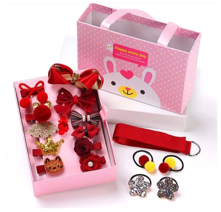 Подарочный набор заколок и резинок для девочек: 18 аксессуаров для волос в красном цвете Подарочный набор включает в себя несколько пар ярких и оригинальных резинок, 9 заколок разных размеров и дизайнов, 2 маленьких крабика и стильную коробочку. Разнообразие аксессуаров для волос: в наборе представлены резинки и заколки разных размеров и дизайнов. Это позволяет создать разнообразные прически и укладки, подходящие для любого случая и настроения. Яркий и нежный дизайн: аксессуары для волос выполнены в красных тонах, что делает их праздничными. Такой набор будет отличным подарком на любой праздник или в обычный день, принося только положительные эмоции. Удобная упаковка: стильная коробочка, в которую упакованы аксессуары, позволяет хранить их в порядке и переносить с собой. Подарочный набор заколок и резинок для девочек станет отличным выбором для тех, кто хочет порадовать свою малышку яркими и оригинальными аксессуарами для волос.