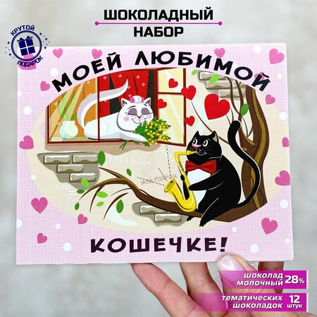 Подарочный набор "Моя любимая кошечка" - это не просто шоколад, это выражение вашей любви и заботы. Набор состоит из 12 плиток молочного шоколада с содержанием какао 32%. Это не просто шоколад, это вкусная еда для всех возрастов. Шоколад можно подарить на любой праздник, будь то День Рождения, Новый Год или просто без повода. Особенностью этого набора является его упаковка. Он упакован в розовую коробку-сюрприз, которая поднимет настроение и станет незабываемым и памятным презентом. Если ваш родной человек загрустит, то этот подарочный набор станет вкусной помощью. Вес набора составляет 60 грамм, что делает его легким и удобным для транспортировки. Подарите радость и удовольствие своим близким с подарочным набором "Моя любимая кошечка".
