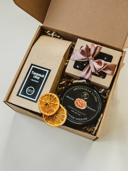 Наш подарочный набор от бренда «Тепло внутри» поможет вам создать праздничное настроение. Подарки коллегам или подарок мужу. Подарок папе покажет ему как вы его любите и цените, так же не нужно забывать про подарок дедушке, к сожалению, нам иногда не хватает времени что бы в должной мере выразить свою благодарность и любовь, а наш подарочный набор новый год подарит теплоту и уют домашнего праздника. Подарочные наборы от бренда «Тепло внутри» это 100% отличное настроение и масса впечатлений. Сладкие подарки коллегам или подарок учителю создаст теплоту в душе и ощущение праздника, одариваемые точно не забудут эти наборы на новый год. Подарок воспитателю Подарок парню или подарок мужчине это важный знак внимания, не нужно забывать про любимых, близких и родственников. Наш подарок мужчине не оставит его равнодушным. Наверняка Вы уже задаетесь вопросом, что подарить друзьям и близким людям. У нас есть готовое решение - универсальный подарочный набор "Халва и орехи", он отлично подойдет в качестве праздничного комплимента как для мужчин, так и для женщин! Вкуснейшие лакомства и стильные мелочи, оформленные в подарочный бокс, станут идеальным подарком. В состав подарочного набора сладостей входят: ароматный черный чай (50 г) "Таёжный сбор", воздушная халва с грецким орехом (200 г), ассорти орехов в темном шоколаде (100 г), поздравительная открытка для теплых слов. Подарочные сладости точно придутся по душе любителям ароматного чая и кофе. Подарочный набор оформлен в стильной крафтовой коробке с атласной лентой. Наши подарочные наборы предпочитают дарить, когда хотят получить массу положительных эмоций от одариваемого! Подарок - это способ выразить свою любовь, признательность и заботу. Именно поэтому наш подарочный набор для женщин станет идеальным воплощением ваших эмоций для той, что заслуживает особенной благодарности. Приятный и милый подарок маме на день рождения бабушке сестре девушке подруге тёте. А если вы думаете, что подарок мужчине - это только гель для бритья или носки, то мы вас разубедим! Наш подарочный набор мужчине - это отличный подарок другу брату мужу коллеге папе дедушке парню.