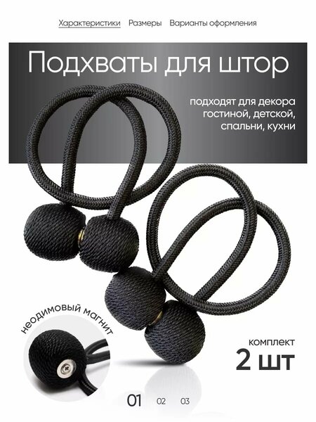 Хотите добавить индивидуальность и уют в интерьер своей квартиры или офиса? Придать вашему жилому помещению индивидуальный и уникальный стиль помогут подхваты для штор. Они отлично подходят для всех типов изделий, от сложных тканей до легких ширм. Зацепки удерживают тяжелые портьеры в гостиной, тюль в спальне и детской комнате, тонкие занавески на кухне. Декоративные прихваты на мощных неодимовых магнитах, что обеспечивает прочный способ крепления и надежно фиксируют захваты в любом месте шторки на выбранной высоте. Зажимы очень удобны и просты в использовании. Минималистичный дизайн клипс оригинально оформит оконные проемы загородного дома и дачи. С помощью держателей вы можете создать идеальное положение складок на материале, закрепить аксессуар так, чтобы он преподносил уровень комфорта. Их можно приобрести для собственного пользования, а также они будут красивым и нужным подарком. Длина веревки между шариками 40 см. Комплект состоит из 2 шт. В нашем магазине вы найдете и другие товары для вас и ваших близких на день рождения, новый год, новоселье и любой праздник. Благодарим за выбор и уверены, что ваши покупки будут приятными и полезными!