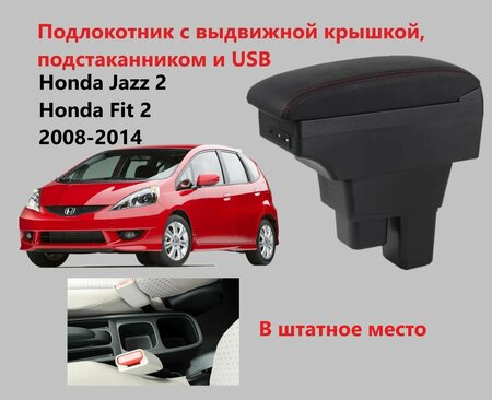 Подлокотник для ХHonda Jazz и FIt 2 поколения, включая рестайлинг 2008 2009 2010 2011 2012 2013 2014 Преимущества подлокотника на Хонда Джаз и Фит 2: Выдвижная крышка Вместительный бокс с двумя отсеками Подстаканник и держатель для телефона сзади USB порты спереди и сзади (usb провод для подключения в комплекте) Простая установка в штатное место автомобиля Хонда Жаз за 10 секунд без саморезов и клея Специальный переходник (крепление) для установки подлокотника в нишу за ручником Надежная конструкция, качественная эко кожа.