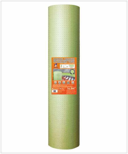 Подложка предназначена для всех типов напольных покрытий, которые укладываются плавающим способом с применением системы теплого водяного пола. Специальная перфорация, сделанная на поверхности подложки, позволяет равномерно распределить воздух из системы подогрева. Маленькие отверстия, которых очень много на поверхности, равномерно нанесены по всей площади подложки, а сама подложка выравнивает основание и продлевает службу напольному покрытию. Площадь в виде рулона позволяет уложить подложку на большой поверхности.