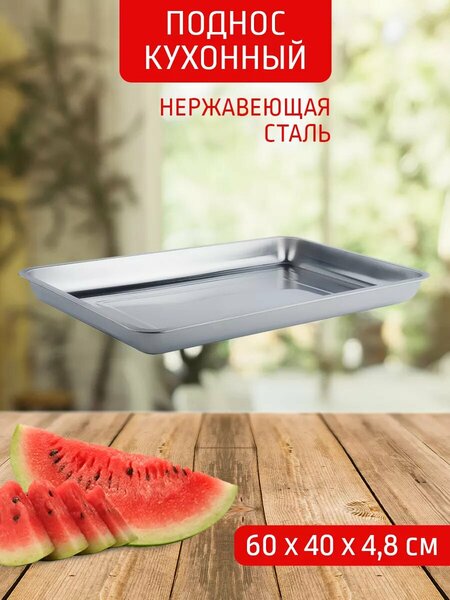 Прямоугольный глубокий поднос из нержавеющей стали - это идеальный выбор для тех, кто хочет добавить немного стиля и функциональности в свою кухню. Данный разнос может быть использован как поднос для завтрака, в качестве подставки, либо сервировочного разноса для подачи блюд. Благодаря своей прочности и легкости, поднос станет незаменимым инвентарём и надежным помощником на Вашей кухне. Его корпус не теряет форму, эргономичные борта облегчают подачу блюд, а гладкая поверхность обеспечивает простоту в уходе. Высокие бортики подноса делают разнос блюд и напитков удобным и безопасным. Стильная зеркальная полировка и изящный дизайн подноса придется по вкусу и ценителям классики, и тем, кто предпочитает утонченность и изысканность. Размеры 59.5*39.5*4,5 см.