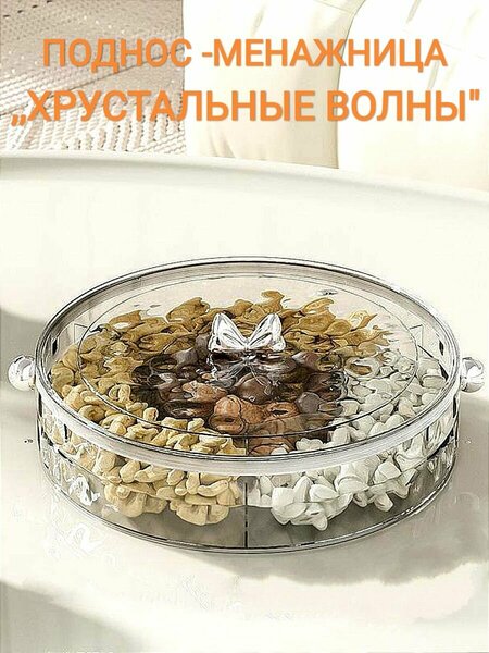 Представляем вашему вниманию поднос-менажницу с крышкой и четырьмя отделениями, выполненную в прозрачном дизайне под названием "Хрустальные волны". Этот элегантный аксессуар станет отличным дополнением вашей столовой посуды и прекрасно украсит любой стол на праздничном или семейном ужине. Поднос-менажница идеально подходит для сервировки разнообразных закусок, десертов, орехов, сухофруктов или фруктов. Благодаря четырем отделениям, вы сможете правильно распределить разные деликатесы, сохранив их свежесть и вкус. Закрывающая крышка обеспечивает надежную защиту содержимого от загрязнений. Прозрачный материал, из которого изготовлен поднос, не только эстетически привлекателен, но и практичен. Вы всегда сможете контролировать запасы, не открывая крышку. Дизайн "Хрустальные волны" добавляет изделию нотки утонченности и стиля, позволяя ему вписаться в любое оформление интерьера. Такой поднос станет отличным подарком для семьи и друзей, а также незаменимым помощником в повседневной жизни. Легкий уход за изделием обеспечивается материалом, который можно легко мыть и использовать многократно. Создавайте неповторимую атмосферу на ваших торжествах, подавая угощения с помощью этого стильного и функционального предмета! Не упустите возможность обновить свою кухню или столовую с помощью практичной и красивой менажницы, которая сочетает в себе изящество и удобство.