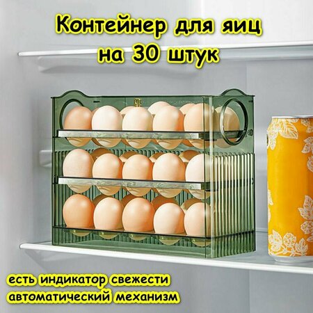 Контейнер для яиц прекрасно подойдет для организации пространства в холодильнике. Контейнер для еды имеет 3 полки общей емкостью 30 куриных яиц. Яйца сохраняют свежесть благодаря вентилируемой конструкции флип-ящика. Контейнер для хранения яиц с легкостью помещается в дверцу или на полку холодильника, что делает его удобным и идеальным в использовании кухонной принадлежностью. Подставка для хранения яиц изготовлена из качественного ABS-пластика. Характеристики: