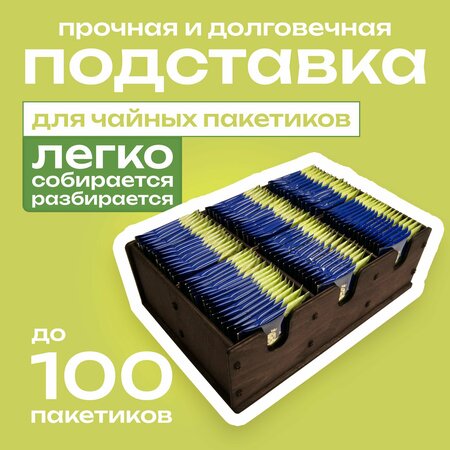 Стиль и функциональность в одном аксессуаре Подставка для чайных пакетиков — это не только стильное, но и функциональное дополнение к вашей кухне. Изготовленная из берёзовой фанеры толщиной 4 мм, она гарантирует долговечность и надёжность в использовании. Организованное хранение чайных пакетиков Этот аксессуар помогает аккуратно упорядочить ваши чайные пакетики, что способствует поддержанию чистоты на кухне. Открытая конструкция позволяет легко и быстро доставать нужные пакетики, делая процесс заваривания чая комфортным и приятным. Вместимость и универсальность в быту Подставка способна вместить до 100 чайных пакетиков различных марок, что позволяет всегда иметь под рукой ваш любимый чай. Она также может выполнять роль органайзера для мелочей, что делает её универсальным и полезным предметом в домашнем хозяйстве. Элегантный дизайн и высококачественные материалы Подставка выполнена в приятном цвете "венге", что придаёт ей элегантный и утончённый вид. Изготовлена она из фанеры толщиной 4 мм, что обеспечивает её прочность и долгий срок службы. Надёжное соединение и традиционные технологии Надёжные соединения обеспечивают устойчивость и долговечность конструкции. Идеальный выбор для вашей кухни Эта подставка — стильное, практичное и удобное решение для хранения чайных пакетиков, которое обеспечит порядок на вашей кухне и станет незаменимым помощником в вашем ежедневном быту.