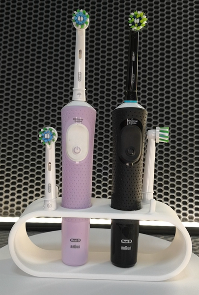 Подставка для 2-х электрических зубных щеток и 4-х насадок. Подходит для BRAUN Oral-B моделей серий VITALITY PRO; PRO series 1; PRO series 3; PRO 500; PRO 700. Отверстия держателей овальные размер 30 х 34 мм, в комплекте вставки для модели VITALITY PRO с тонким корпусом 28 х 29 мм. Щетки других производителей проверяйте по размерам на схеме. Изготавливается на 3D принтере, возможны мелкие огрехи. Пластик PLA, белый матовый.