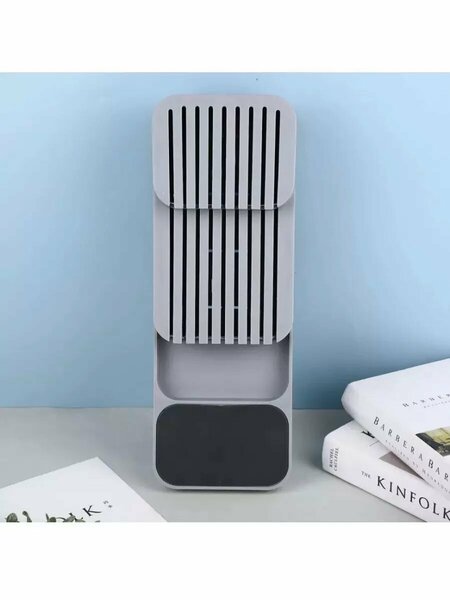 Правильно организованные в хранении столовые принадлежности на кухне обеспечат удобство и быстрый доступ к ним. Подставка для кухонных ножей обеспечит Вам легкость выбора необходимого ножа и поможет сэкономить место. Это кухонный органайзер сделанный из прочного пластика, размером 40х14х7.5 см, в котором набор ножей хранится отдельно друг от друга и не соприкасается, что не даст ножам быстро затупиться. Любой нож будет в быстром доступе. Держатель кухонный поможет организовать пространство и сэкономит место на вашей кухне и в ящике для столовых приборов, так как он легко помещается в стандартный ящик. На 2-х уровнях органайзера расположены держатели для безопасного и компактного хранения ножей с лезвием разной длины от коротких фруктовых и овощных ножей до длинных разделочных и универсальных. В подставку можно уместить до 9 ножей. Органайзер для ножей позволяет безопасно хранить кухонный инвентарь и уберечь лезвия от коррозии, столовые приборы в нем будут в сохранности. Подставка сделана из высококачественного экологичного пластика. Лоток под кухонные принадлежности занимает совсем не много места. Держатель для ножей поможет организовать порядок в столовых приборах на вашей кухне и освободить дополнительное пространство. Кухонный держатель легко моется.