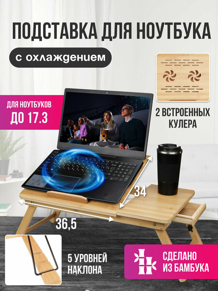 Столик для ноутбука: компактное и функциональное решение для комфортной работы. Столик для ноутбука изготовлен из дерева, что обеспечивает прочность и долговечность конструкции. Деревянная поверхность приятна на ощупь и не скользит, что делает использование столика безопасным и удобным. Особенностью столика является встроенное охлаждение. Два вентилятора обеспечивают эффективную циркуляцию воздуха, предотвращая перегрев устройства и продлевая его срок службы. Столик имеет компактные размеры 55х32,5 см, что позволяет разместить его даже на небольшом рабочем пространстве. С его помощью вы сможете организовать удобное рабочее место, не занимая много места. Столик подходит для ноутбуков с диагональю от 30 до 44 см. Это позволяет использовать его с различными моделями ноутбуков, обеспечивая комфортное использование и надежную защиту от перегрева. Выбирая столик для ноутбука, вы получаете не только удобное и функциональное решение для работы, но и стильный аксессуар, который станет ярким дополнением вашего рабочего места.