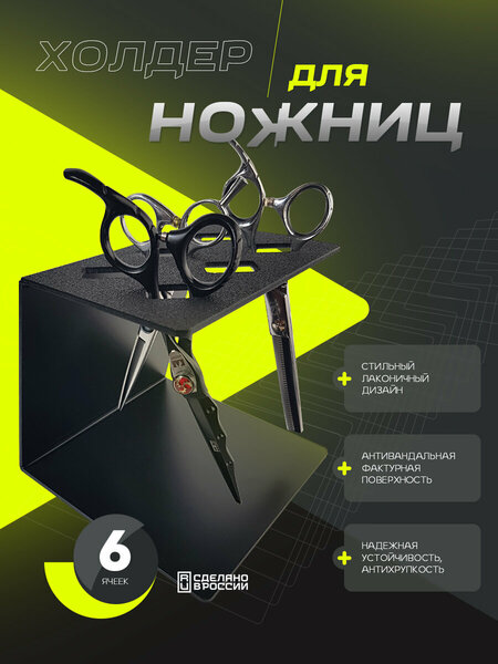 Подставка для ножниц черная с антивандальной поверхностью. 6 ячеек. АБС-пластик толщиной 3 мм. Размеры 14х14х13 см. Максимум устойчивости. Подставка для ножниц HairTouchTab — это практичное и стильное решение для организации рабочего места парикмахера. Изготовленная из прочного ABS-пластика, она надежно удерживает ножницы, обеспечивая их сохранность и доступность. Компактный размер подставки позволяет разместить ее на любой рабочей поверхности, не занимая много места. С HairTouchTab ваш рабочий инструмент всегда будет под рукой, что повысит эффективность и комфорт работы.