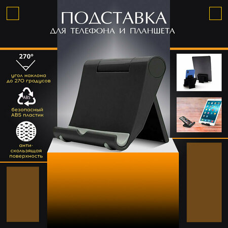 Подставка для телефона настольная / Черный держатель для планшета, смартфона / Крепление под телефон на стол для селфи