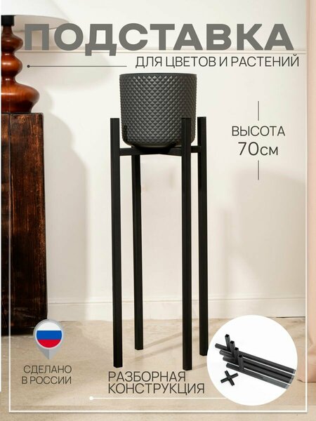 Представляем вашему вниманию напольную подставку для цветов, которая идеально впишется в любой современный интерьер. Эта стильная и функциональная стойка под цветы, выполненная в актуальном стиле лофт, станет ярким акцентом в вашем доме, на даче или в загородном доме. Изготовленная из прочного металла, подставка выдерживает нагрузку до 50 кг, что позволяет разместить на ней даже тяжелые горшки с цветами или кашпо. Разборная конструкция делает этажерку компактной и удобной для хранения, что особенно важно для тех, кто ценит комфорт и эргономику пространства. Высота подставки составляет 70 см, а внутренний диаметр — 26 см, что обеспечивает оптимальное расположение растений и добавляет им визуального пространства. Благодаря черному цвету, подставка прекрасно сочеталась с любыми оттенками стен и мебелью, подчеркивая ваш уникальный стиль. Эта цветочница напольная не только украсит ваш дом, но и станет прекрасным элементом декора на застольях, мероприятиях или в садах. Она подходит для различных стилей оформления, от классического до современного. Используйте её как подставку для бонсая или для размещения других растений, чтобы создать уютную и гармоничную атмосферу. Мы предлагаем вам высококачественную подставку для растений, произведённую в России, которая станет настоящим украшением вашего интерьера. Позаботьтесь о своих цветах и сделайте их максимальным центром внимания с помощью нашей надежной и стильной подставки под цветы. Откройте новый уровень комфорта и красоты в вашем пространстве с этой разборной металлической подставкой!