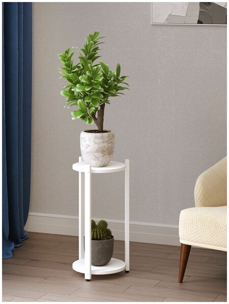 Цветочница из стали с порошковой покраской и ЛДСП премиум класса, оттенок Белый от фирмы Ламарти. Стильная и функциональная, удобная и устойчивая. Высота 60 см. Круглая полка 29 см в диаметре. Производится в нескольких оттенках. Есть подобные полки высотой 80 см (3 полки) и 120 см (4 полки) Есть регулировочные ножки.